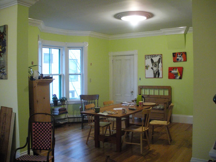 Here it is folk, the moment you’ve all been waiting for. Photos of our new/old, colourful and beautiful on the inside/ haunted on the outside house. I’ll say the same thing I say to everyone that walks into my home…Please excuse the mess. I know I have a good excuse, but the truth is it doesn’t really ever get better. This is the downstairs. I just uncovered the floor in my studio and the bedroom is a sea of laundry. The bathroom looks like a tenement building on the Lower East side. So, this is all I’m ready to reveal at this point. Also coming at some point in the future are wall kitchen cabinets, draw pulls and curtains. Right now we hang our coats in the windows at night. Good thing we have great neighbours. I have to say, work in progress and all, I’ve never been happier. Hope you enjoy.