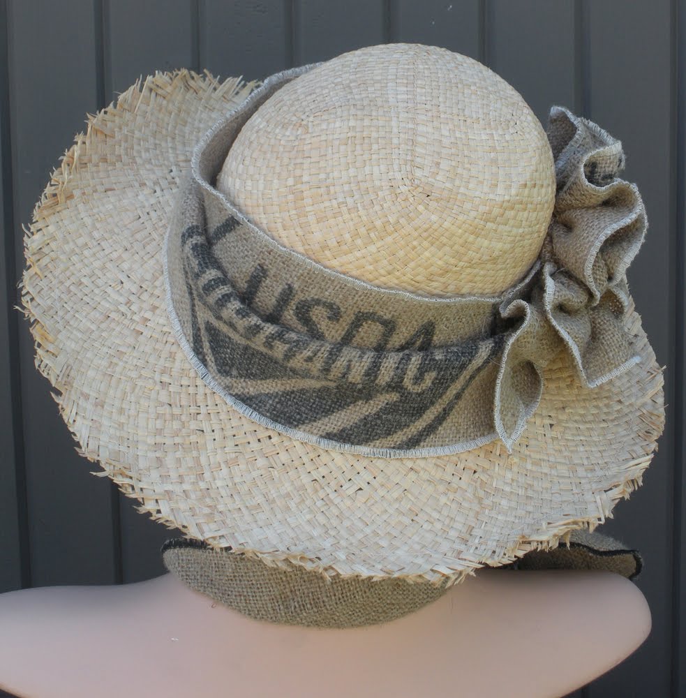 I have had a fun few days making coffee hats. It hadn’t occur to me to trim a straw hat with the burlap, so when it finally clicked it was one of those “I could have had a v8” moments. Still trying to decide if I like the grey background or not. If you have an opinion please let me know. To view all the details of this hat click here