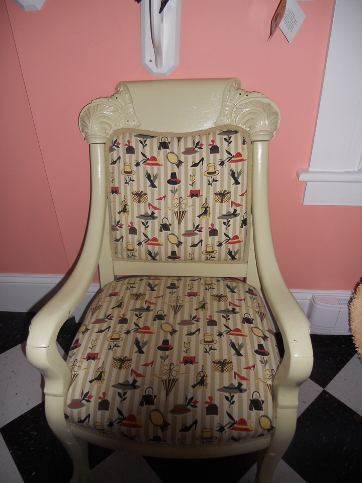 This chair has been waiting so patiently to live in my studio. I found it on the side of the road a few years back. It looked nothing like this. My friend Aimee at Artisan Upholstery gave it a complete makeover.
