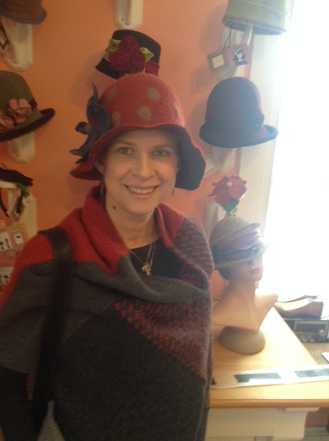 There are days when I just can’t believe how lucky I am to get to make hats for beautiful ladies. This Is Kelly. I don’t think she will mind me telling you that she has just gone through some aggressive cancer treatment. She is a local mom and some friends of hers from The South Shore Waldorf school bought her a gift certificate for one of my hats. We spent some time playing around until we discovered that this wet felted one of a kind merino wool hat has been waiting for her. It’s true that when you look like Kelly even a paper bag will be flattering, but this hat just screams happiness and I’m so glad they found each other.