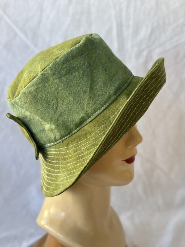 Betty Bucket is my answer to, Do you sell bucket hats? She is a play on a classic bucket hat, but with a dash of elegance, a hint of pizazz and a whole lot of sophistication. She is as pretty as she is practical. Her wide brim will protect you from the sun. The tapered brim allows you to lean back in your chaise longe while sipping Pina Coladas. She easily folds up in your suitcase, can be stashed in your tote bag and can be hand washed. She is made from hand dyed cotton canvas and is fully lined. The canvas fabric is very strong and will continue to hold up for years to come.