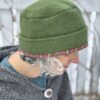 The Claire hat makes a wonderful sporty hat. With three layers over the ears, it is toasty warm. It can be folded up and stashed in your bag…or sleeve.