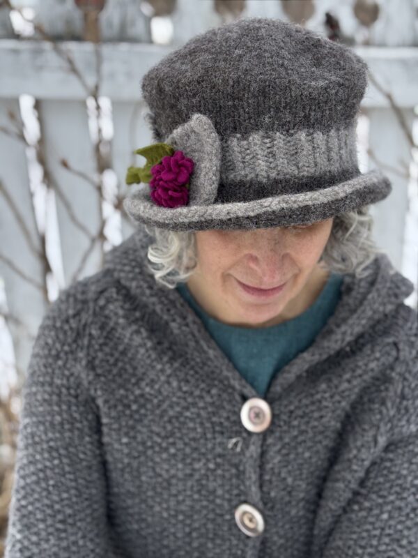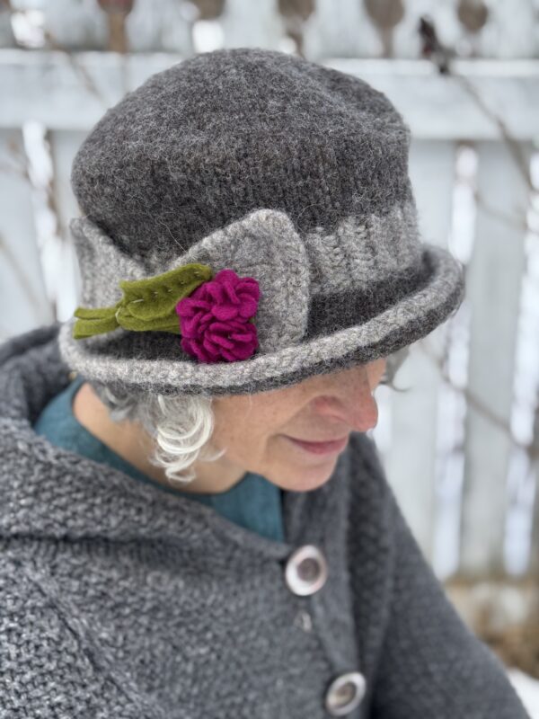 Eliza- Edwardian Style Knit and Felted Hat-Natural Greys- Ready to Ship- Small to Medium