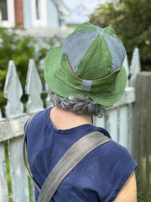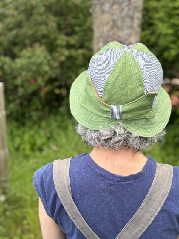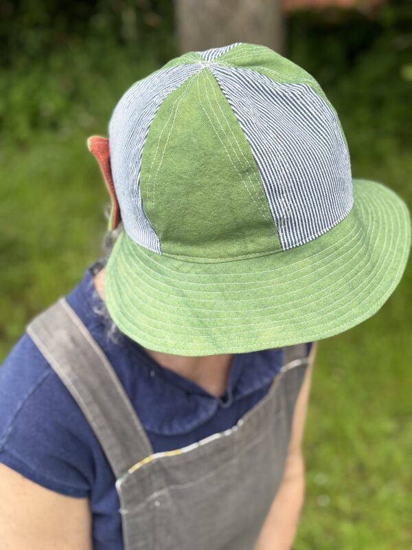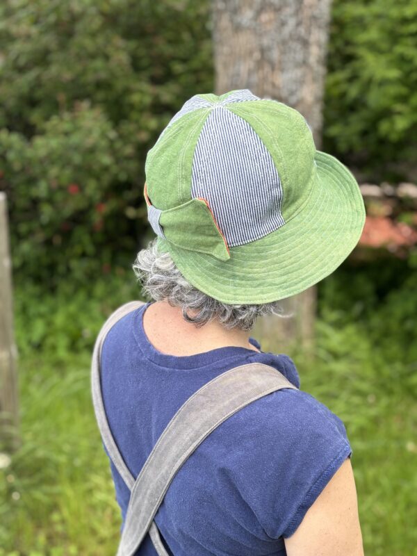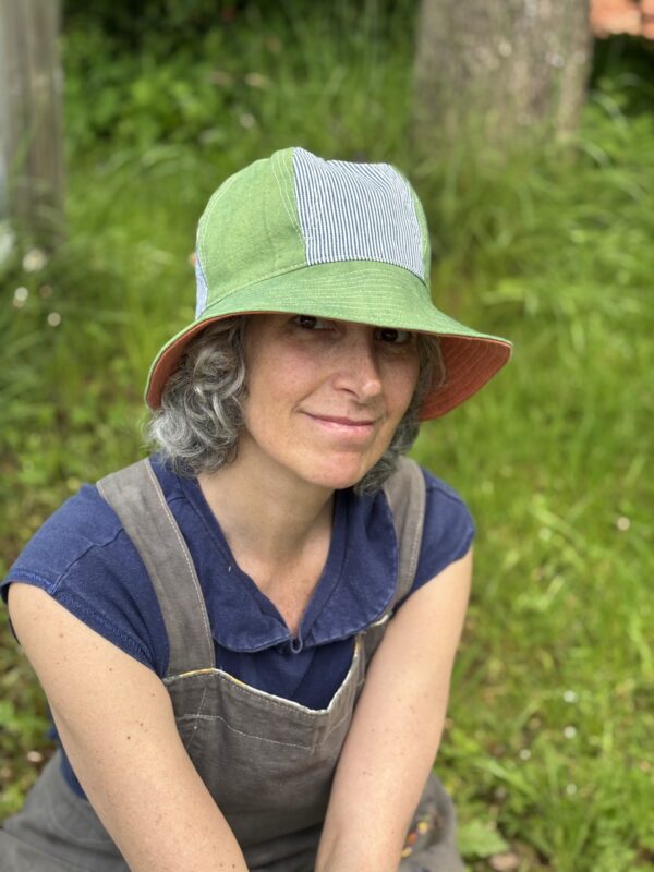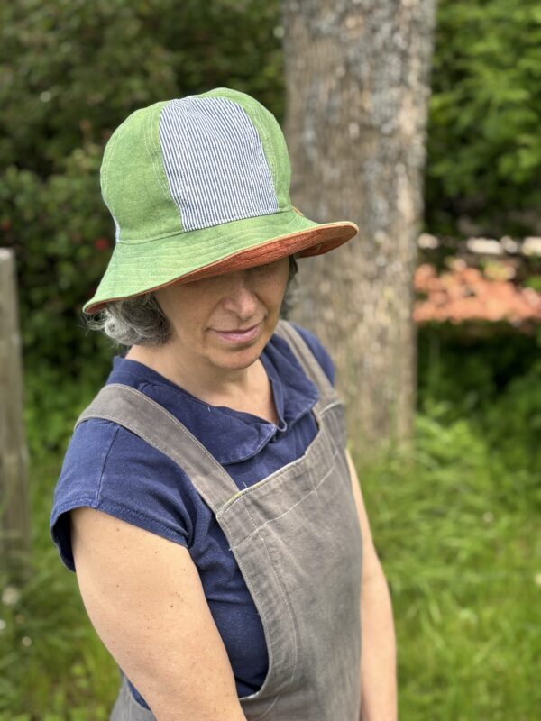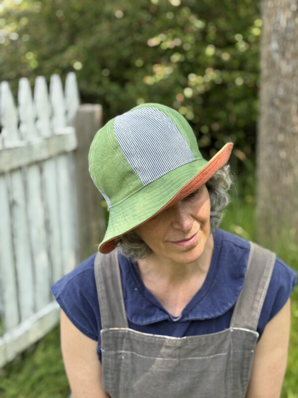 The classic Franny cotton canvas cloche has a new version. She’s a little less romantic and a little more playful. Nineteen Twenties tennis player comes to mind. Each colour blocked Franny is one of a kind, allowing me to work with small fabric remnants. Keeping textiles out of landfill is always important to me.
