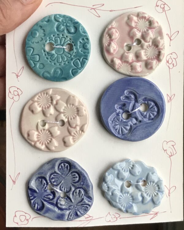 Handmade Ceramic Buttons- Multi coloured (6 buttons)