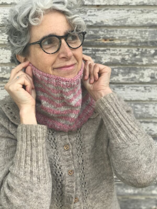 The Montague Street Striped Cowl is named for the Lunenburg, NS street that houses my favourite yarn store, The Mariner’s Daughter.