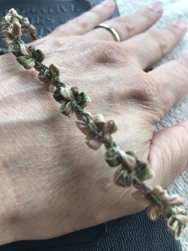 This beautiful vintage ribbon is no longer produced. It was made in France. It is perfect for so many sewing projects as well as scrap booking.