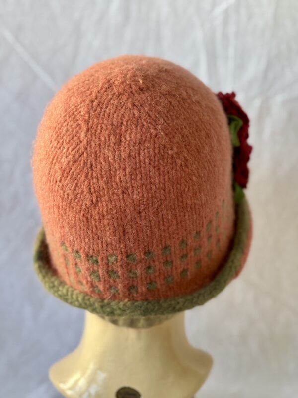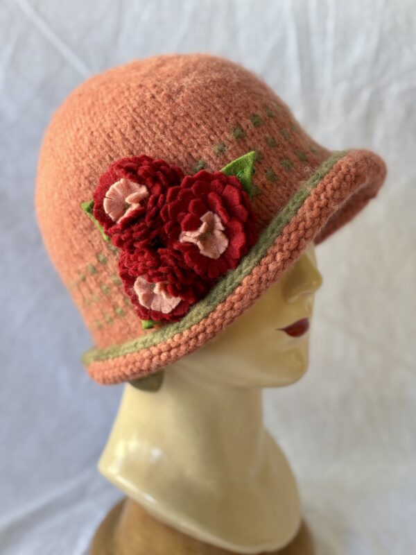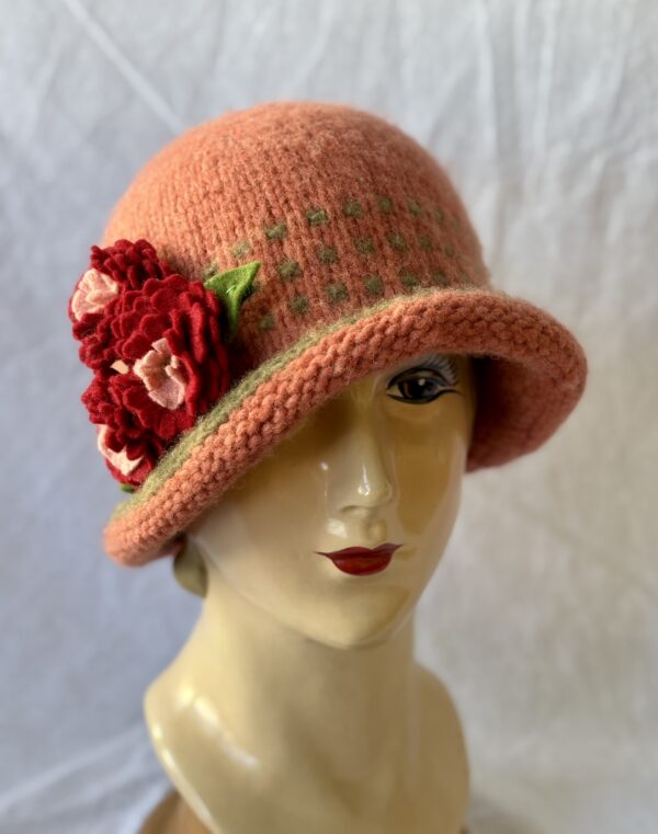 Wool Cloche Hat- Louise- Naturally Dyed Coral- Size L-XL- Ready to ship