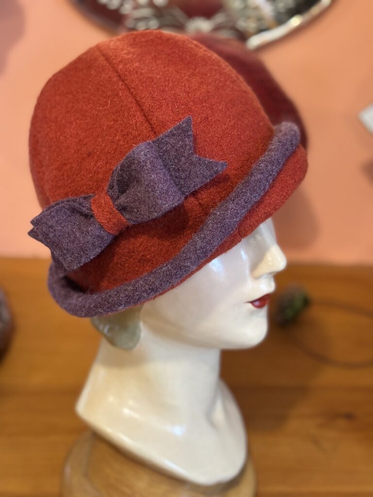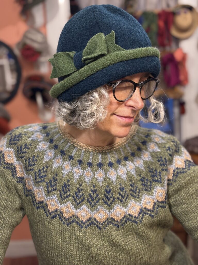 Sometimes the new hat design muse dances into my studio, completely uninterested in how busy I am. I try, very diplomatically, I think, to shoo her out the door, explaining that the Christmas season is really not the best time to explore new hat possibilities. Might she come back in February when I am caught up on orders? Between you and me, she was really pushy and there was nothing to be done, but let her in.