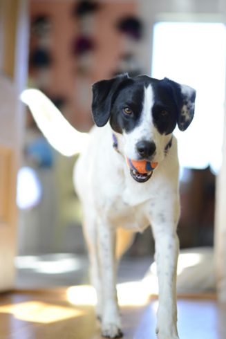 The first being to meet customers at the door is Lego. Usually he brings his pillow. Not so much to give, as to show. Do you like my pillow? Look, I have a pillow.
