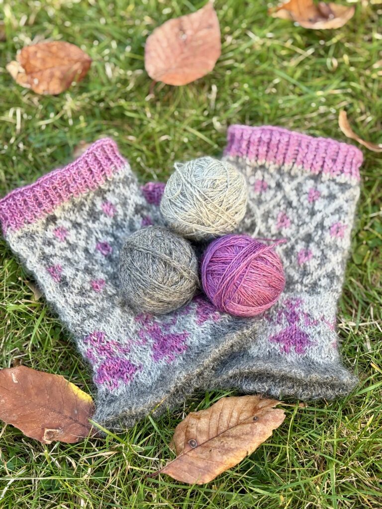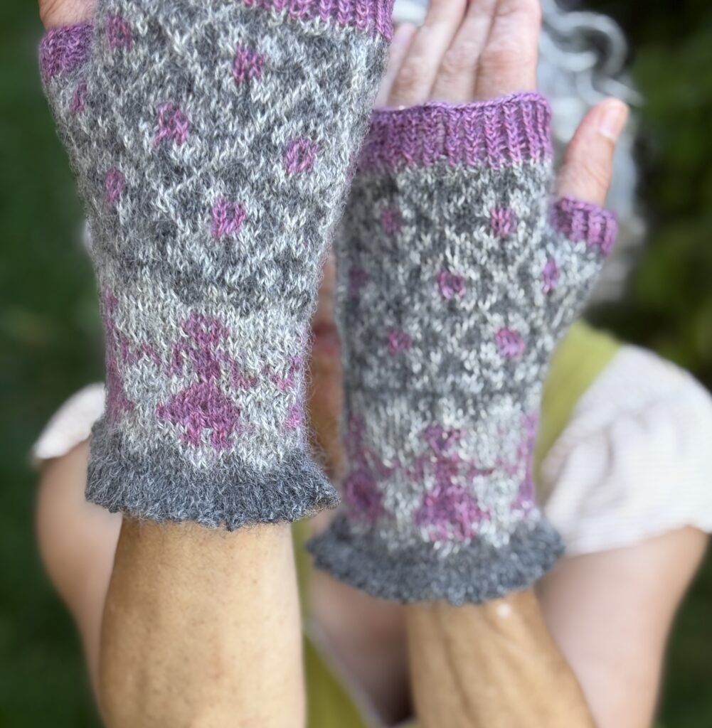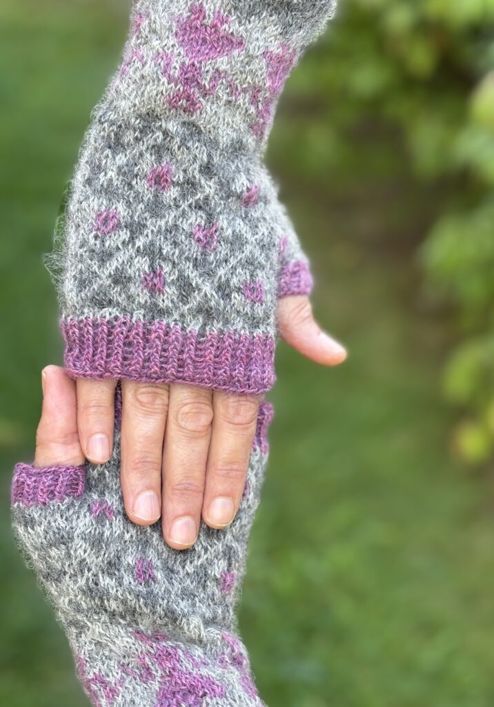 Yarn speaks when it’s ready. To be perfectly honest, one of the things holding me back was the purple. I don’t wear a lot of purple. But a few months ago I found myself mysteriously drawn to this colour and inspired to make myself some pretty purple and grey mitts.