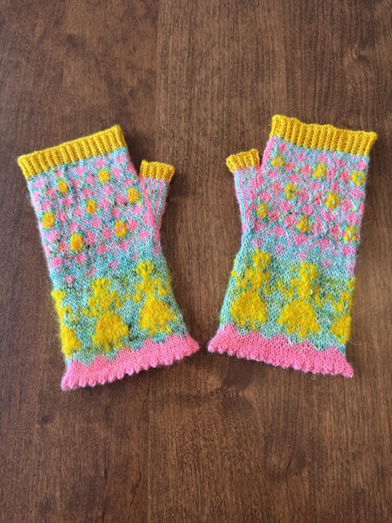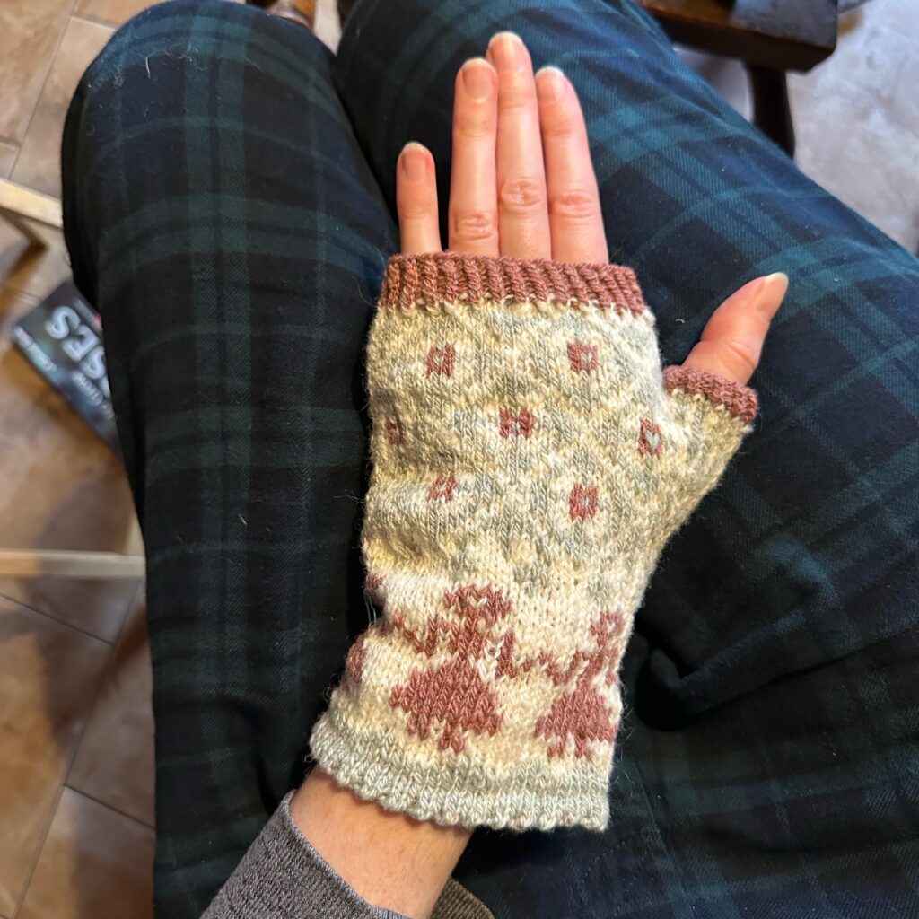 These mitts have a sweet story behind them. Luella is the sister of Louise (who has a hat named after her). Luella lives in Sweden and was visiting Louise. They both came to my studio and bought some hats…and we talked knitting, of course. Luella and her hats went home to Gotland.